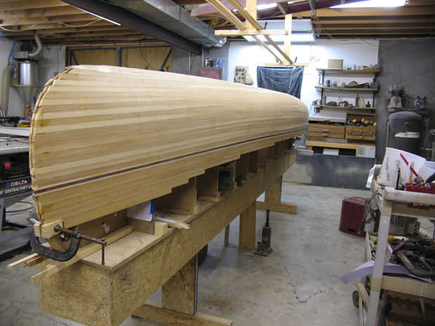 Fotos del progreso de mi canoa de piel-en-marcoPaso 1: Planes de estudio Paso 2: Construir el largero Paso 3: Cortar los tallos Paso 4: Cortar los largueros, costillas y pisoPaso 5: Coloque la contraquilla y largueros Paso 6: Latigazo contraquilla y