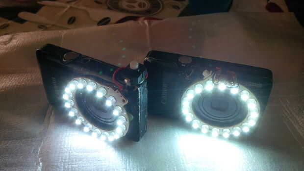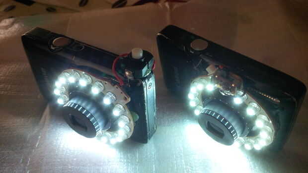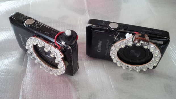 Lo primero que necesitas es por supuesto su cámara y una anillo-luz de LED. Usted puede comprar estos ya tan barato como $2 en eBay buscando por "lupa luz USB portátil". Comprar uno (o que sea una docena, te encantarán) hackear abierta y coge sólo el anillo desnudo de LED.