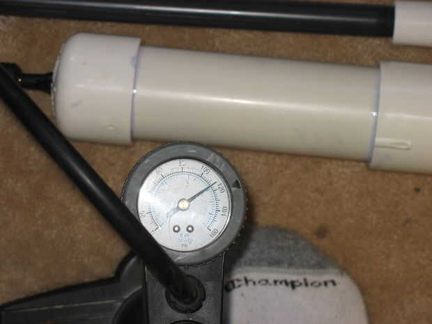 Usar una bomba que tiene un indicador y puede bombear al menos 120 PSI. Aquí todo está clasificado por lo menos 180 psi (el tubo 1.2 usé es 600 psi) 120 debe ser fino.