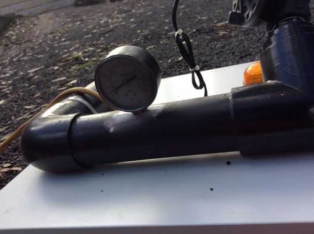 Se trata de un lanzador del cohete del aire comprimido. Utiliza tubos de PVC común y accesorios que cualquier persona puede tener en sus manos.Puede lanzar cualquier cosa de dardos Nerf a los cohetes caseros. Tengo todas las partes de un local es par