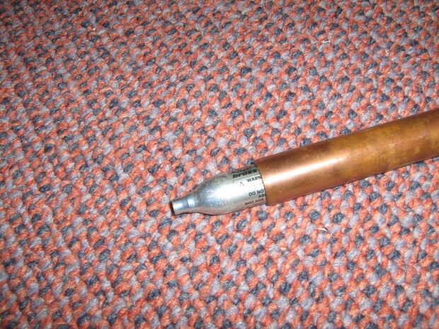 Cañón de aire comprimido. Con un barril de 10 mm de un tubo de cobre. Utiliza una cámara de niple de tubería en orden a Clavero aire antes de disparar. Video explicativo del uno mismo