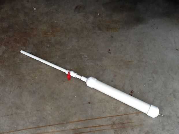 Este instructable le mostrará cómo montar este cañón de aire básico. Con la presión correcta de aire, el proyectil adecuado (una pequeña piedra o pedazo de patata) y un poco de suerte, el cañón de aire puede disparar hasta 200 pies. Hay muchas versiones diferentes de este diseño básico, debido a su simplicidad. Este cañón de aire nunca debe ser bombeado a más de 40 psi, pues podría explotar con una peligrosa cantidad de fuerza.