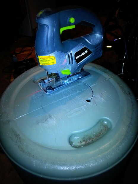 De mi investigación el agujero típico es aproximadamente la mitad del diámetro de la cara delantera del cilindro (o caja). En retrospectiva debo han hecho mi abertura un poco más grande porque he visto algunos ejemplos en 2/3 el diámetro trabajando muy bien. Usé algunos cuencos de cristal y un lápiz para trazar el círculo para guiar el corte. He intentado usando el cuchillo para hacer el agujero, pero plástico (sorprendentemente) era demasiado grueso. Luego perforar un agujero piloto e hizo el trabajo rápido de la misma con una sierra de calar.