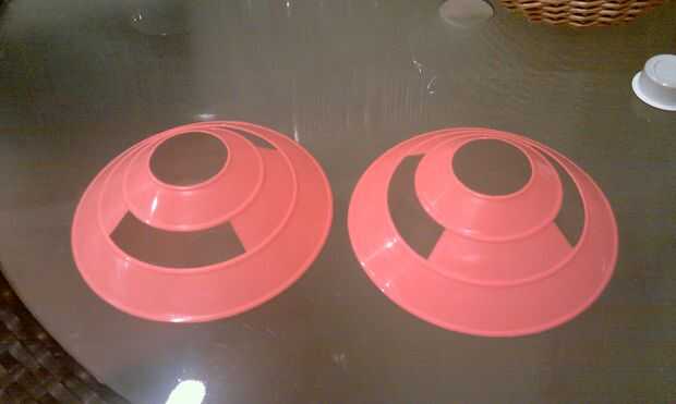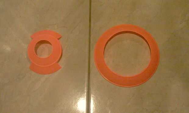 1. corté el anillo interior de 2 torres de bajo perfil hacia fuera.  Luego cortar las dos etiquetas y conectado a ellos para hacer un círculo completo.  He invertido esto y pegue hacia el anillo grande.