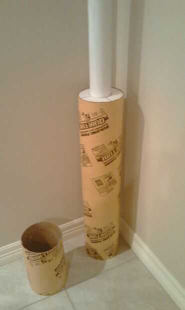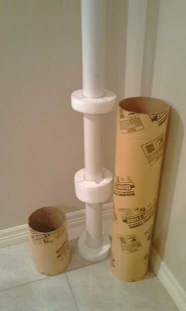 3. Insertar el tubo de PVC a través de uno de los donuts (final al ras con la superficie) y había pegado en lugar. Entonces espaciados los donuts restantes a lo largo de la tubería de PVC que se oculta cuando se insertan en el tubo de constructores y pegadas en su lugar (había cortado a los constructores tubo a una longitud de 36"). Esta inserta en el tubo de constructores y pegado en lugar.