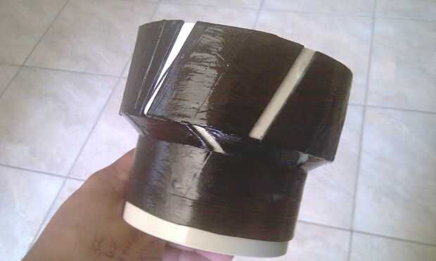 4. tomé el reductor y hacer marcas con mi rotulador para imitar las rejillas de ventilación en el cañón. Pensé en estos con mi Dremel pero decidió aplicar espuma tiras de 1" para construir los canales izquierdos entre cada segunda tira y reductor de talla. Esta había cubierto con modge podge una vez seco.