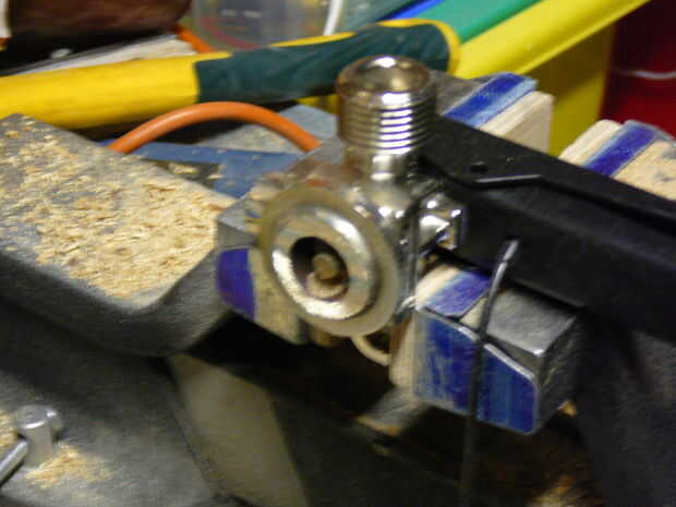La razón de la t en vez de ir directamente a la válvula es que el cañón necesita una fuente de aire comprimido. En el tee lo araldited una válvula de llanta de bicicleta en lugar así como la fijación entre un olivo modificado y el. La oliva fue modificada sólo mediante la presentación de la parte superior de por lo que no era tan aguda. No quiero cortar a través de la goma. Para utilizar el araldite primero limpié todo lijado y luego enjuague en alcohol para quitar cualquier grasa y aceites de la piel. Después de su aclaración, dejar residuos o grasas se forman en contacto con la parte i utiliza una barra de metal para levantar la parte de la quemar y luego quemó.