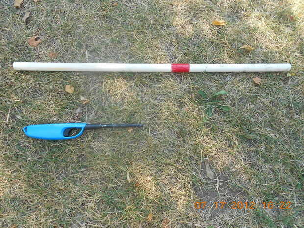 Materiales pueden variar dependiendo de lo que tienes en casa o lo que usted puede encontrar fácilmente. Utilice al menos 1/2" tubo de PVC de diámetro para el cañón. Cortar una pieza de 4" de largo y eres bueno para ir. Luego usted necesita un casquillo de extremo de diámetro de PVC de 1/2". En la segunda foto, la tapa ha dado ya en el cañón. Seguir adelante y hacerlo ahora. También, usted necesita una encendedor de barbacoa y alcohol isopropílico. Y algunas zanahorias... :)