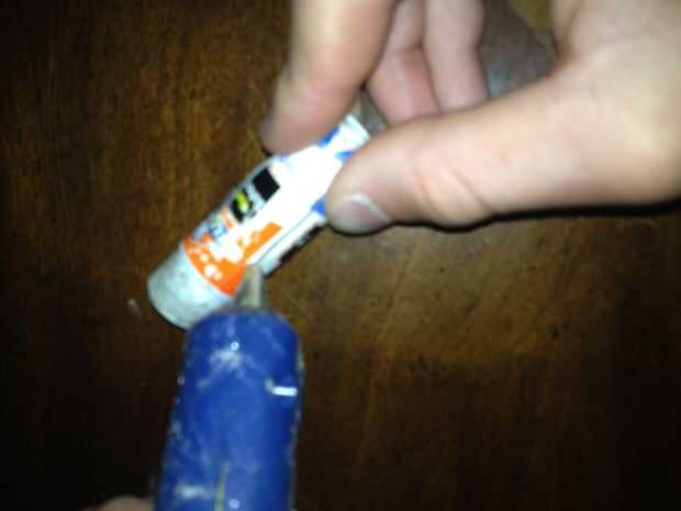 Cuando se insertan los clips de papel doblarlas hacia abajo en el exterior, asegúrese de que son todavía bastante juntos en el interior y poner pegamento en el agujero.
