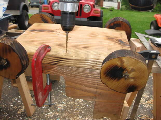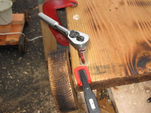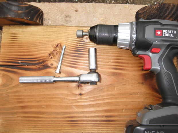 Perfore un agujero guía con una broca de 6/32 bit en cada uno de los orificios de ajuste para los tirafondos.  Atornille el perno de retraso con un controlador o una llave.  El lag no es necesario ser super apretado apenas ajustado para sostener el lateral en su lugar.