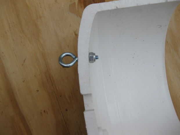 Enrosque el perno de ojo en el agujero de 5/32" y coloque la tuerca para bloquearlo.
