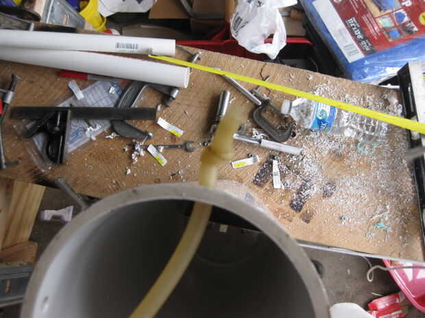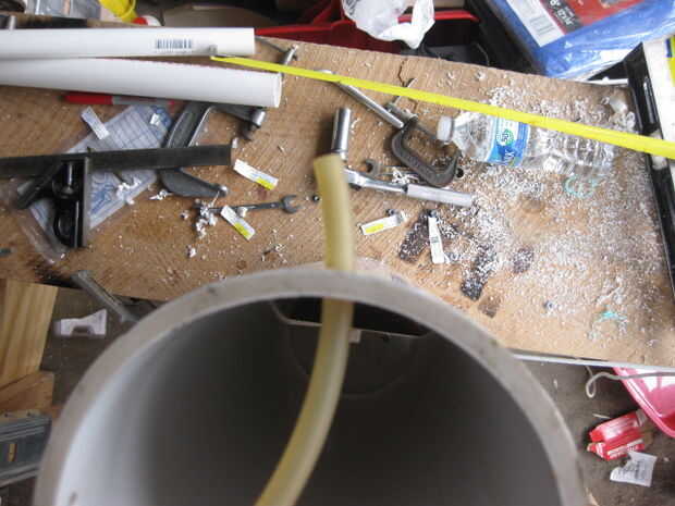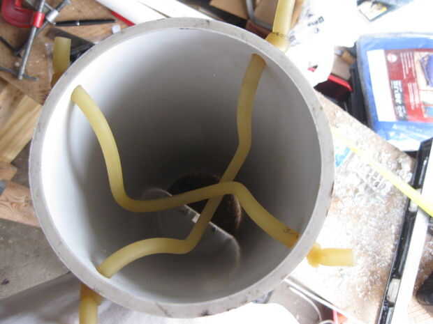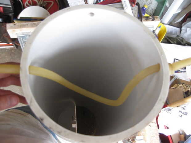 Latex insertar a través de 3/8" agujero y lazo.  Asegúrese de que el nudo es lo suficientemente grande como para mantener el tubo se deslice a través.