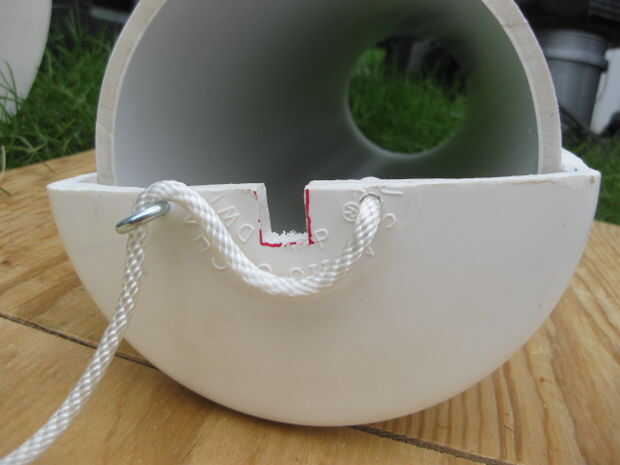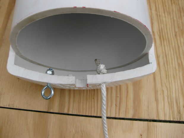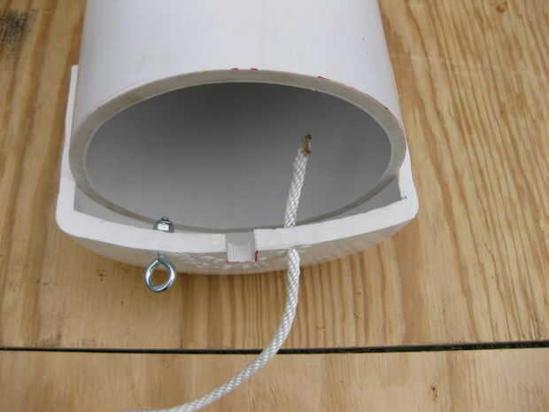 Acople 1/4" de la cuerda a la Asamblea de la leña.  Insertar la línea en el orificio de 1/4" y ate.  Enhile el sedal a través de la armella.