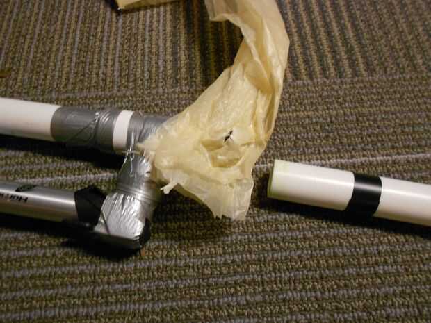 Si la bolsa no pop, comprobar el final de la cámara de fugas y poner más cinta adhesiva alrededor de la conexión de la bomba-T-joint. Asegúrese de que no hay codigo postal amplia pliegues en la cinta donde puede escapar el aire.
