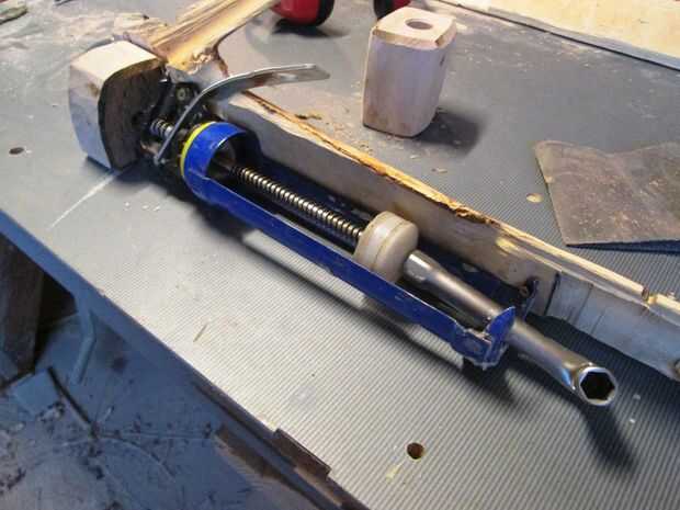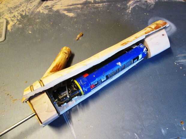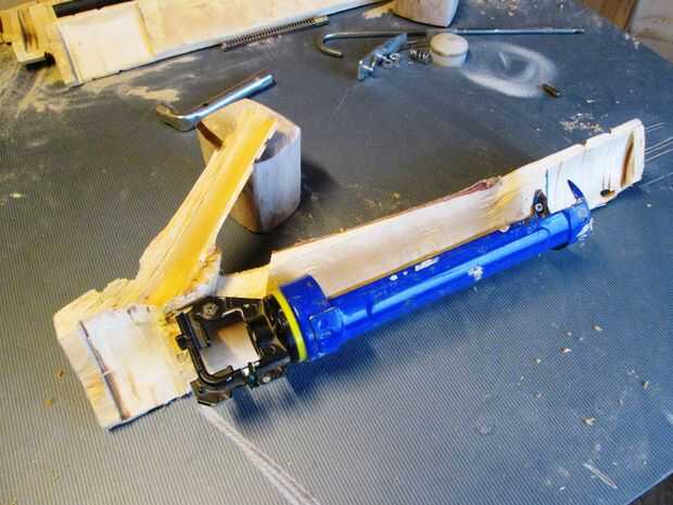 Tallar un agujero para el gatillo y continuar los ajustes internos. Después de algunos cincelado, unas palabras fuertes y una cerveza o dos puede introducir la pistola de agradable y dulce en su ataúd de madera.