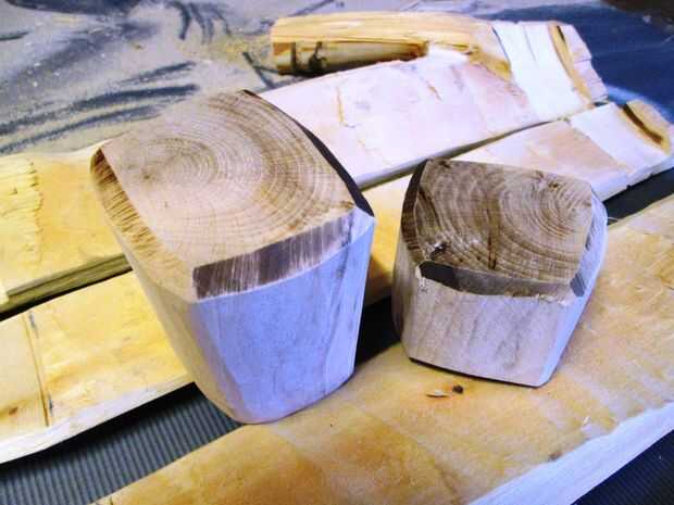 Haga dos grandes tapones con algunos restos de madera y corte algunos grandes surcos en las planchas con la sierra ingletadora.