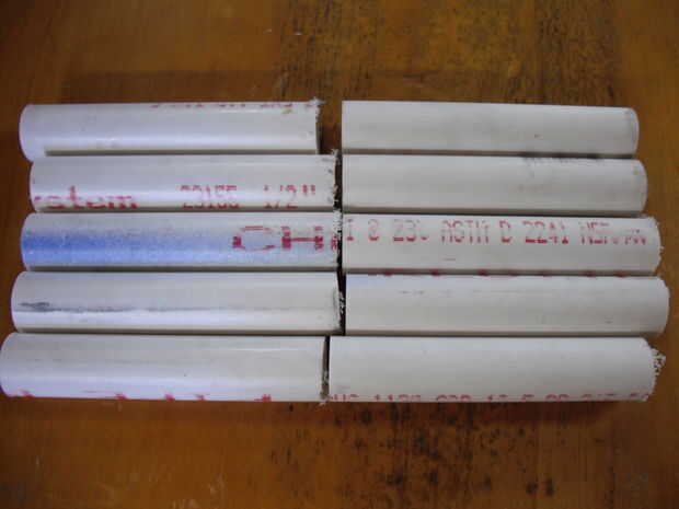 Corte una sección de 2' 1" del tubo de PVC para el cuerpo principal. Corte una sección de 2' del tubo de PVC de 1/2" para el cuerpo secundario.