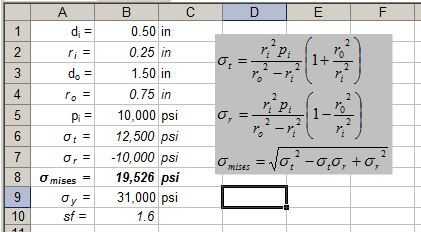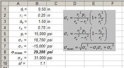 La tensión radial máxima es de 10.000 psi. El hecho de que esto es igual a la presión no es una coincidencia.