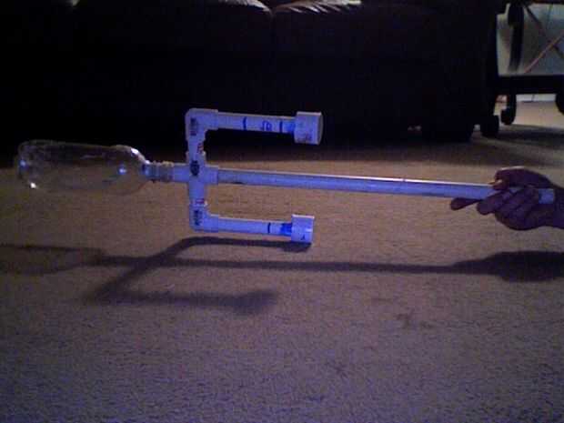 Pieza (A) va en la parte superior de la (Cruz). Luego pieza (B) entra en el lado derecho de la (Cruz) está conectado a un (codo) luego se conecta a (F). Tomar la pieza (C) y conectarlo al (codo) que se conecta a (D), entonces usted tendrá una agujero dejado... será puesto (E) en él y una botella a éste con cinta! Si utilizas pegamento no pegue la cuz de piernas deben mover en altura!! '
