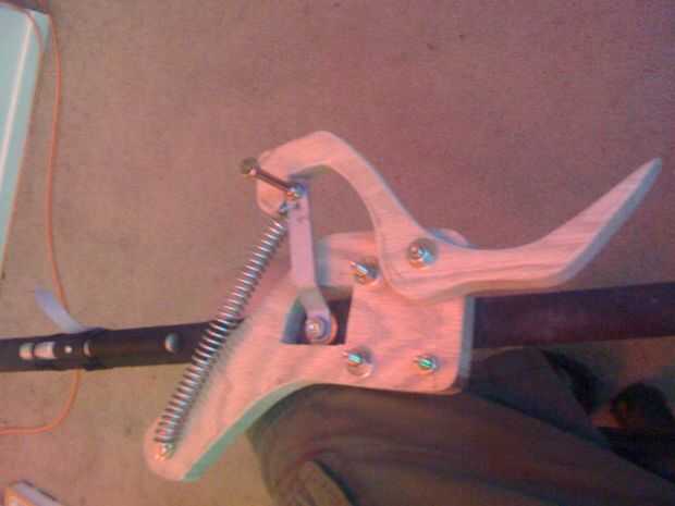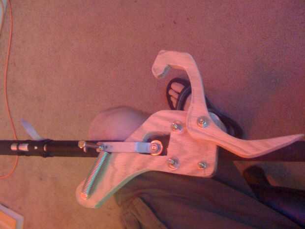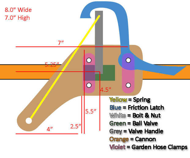 Como paso opcional, que está más allá del alcance de esta guía, recomendamos el desarrollo de una acción de resorte para abrir el cañón más rápido y con menos rebote/retroceso que una mano humana se produciría. Utilizando una 4", primavera de 20 libras/fuerza de la palanca permite más aire para golpear el redondo más rápido. Es especialmente importante cuando se llega a presiones más altas (por encima de 120 PSI). Edificio uno puede aumentar la cantidad de fuerza entregada por más de un 200% (guesstimated). También recomienda está rociando grasa de litio en su válvula de bola para hacer girar más rápidamente, así como lubricante del cañón. Adjunto dos fotos y un diagrama para construir su propia válvula de bola de palanca de resorte del.