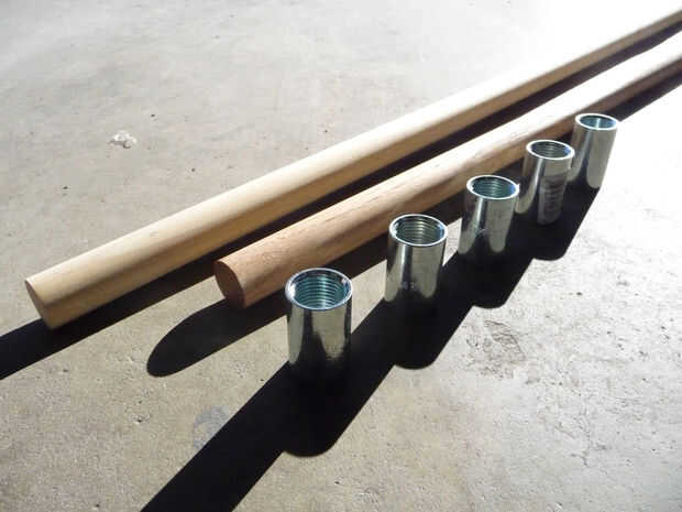 Home Depot tiene una variedad de barras de madera que usted puede comprar de diferentes densidades de la madera. Sugiero una madera dura como roble o arce, maderas ligeras como el pino tienden a romper o fracturar el impacto. Varillas son muy baratos, que conseguí una pasador de roble de 36" por $4, que hace 18 babosas.