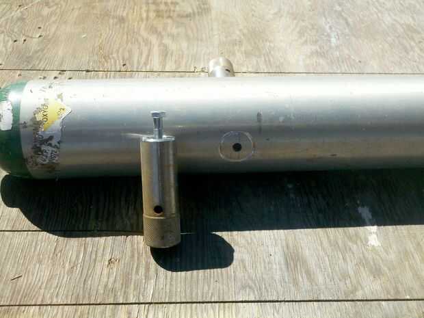 1. Coloque un tubo de acero cilindro de oxígeno y de la marca donde el cilindro se encuentra con tubo