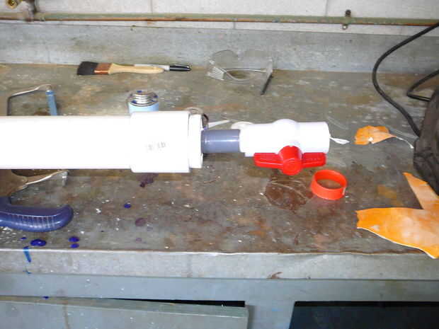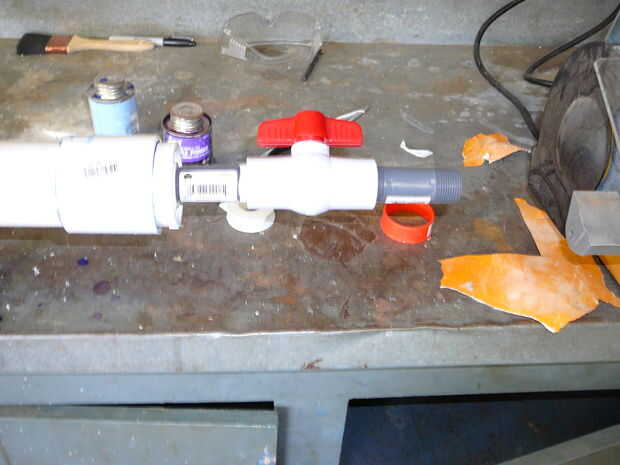 tomar los 3' pieza de 2" pvc, los otros 2" acoplamiento y buje, la válvula y las 2 cositas grises (no olvides cintas de teflón y pegamento de la cartilla)