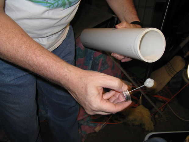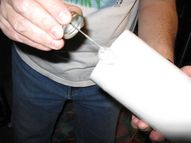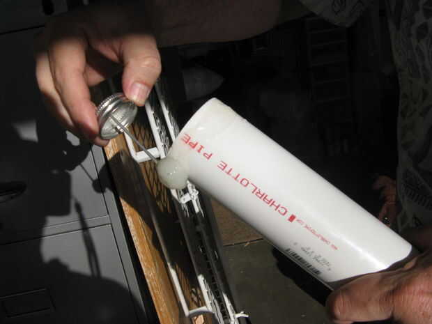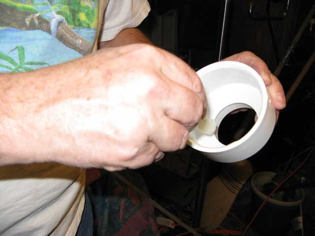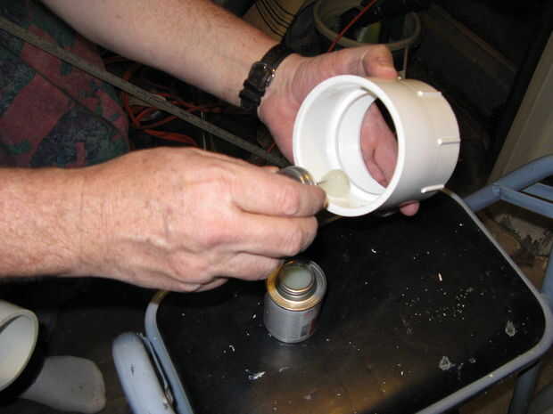 puso una cantidad generosa de PVC cemento alrededor del exterior de la cámara donde se colocar el reductor y luego poner otra cantidad generosa en el interior del reductor y fije. ¡ Recuerde! Añadir presión a la conexión. ahora hacer lo mismo con el otro lado y el adaptador hembra. luego hacer lo mismo con el cañón