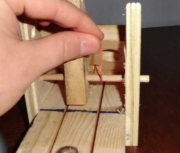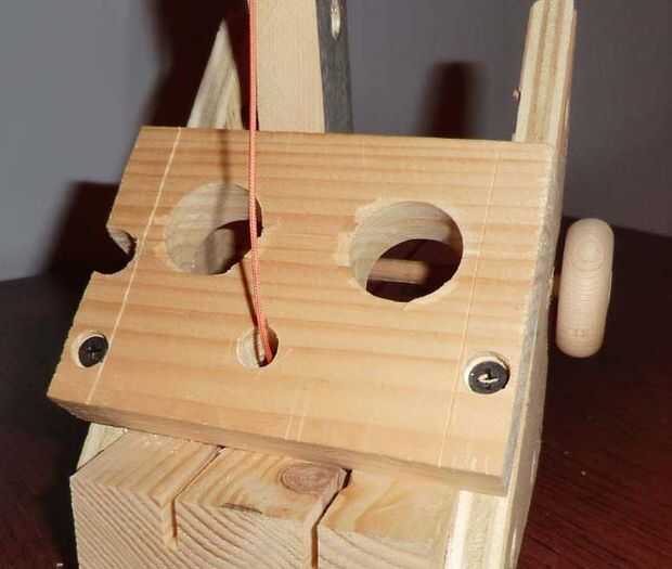 La cadena de la palanca por la parte delantera del hilo de rosca.