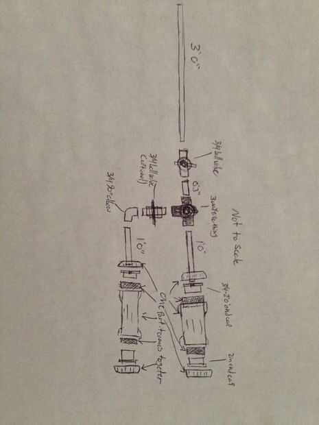 Emocionado después de encontrar las instrucciones para hacer un cohete de aire comprimido por Internet, imprimir la lista de piezas y se apresuraron comprar todo. Trató de Home Depot, Lowe y un almacén local del hardware, pero no pudo encontrar todas
