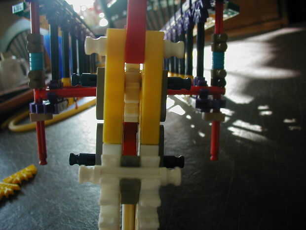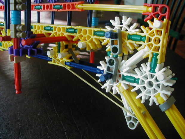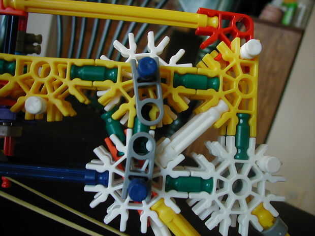 Piezas necesarias: azul barras: 2 barras verdes: 1 conectores gris oscuro: 4 conectores naranja: 1 conectores gris claro: conectores blanco 1: 1 gomas medio: barras blanco 1: 1