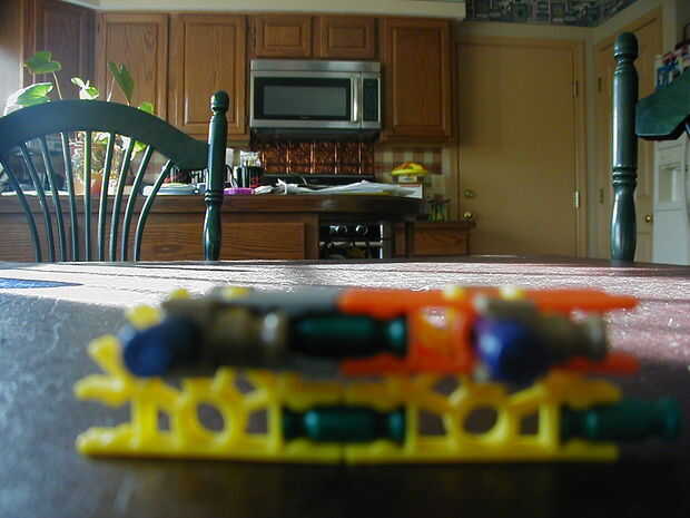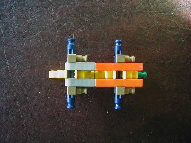 Piezas necesarias: azul barras: 2 barras verdes: 4 conectores gris oscuros: 2 conectores amarillos: 2 conectores naranja: 2 pedazos: 4. no debe ser pedazos sobrantes. Si hay que perder algo. La munición puede ser un poco diferente, pero esto funciona mejor.