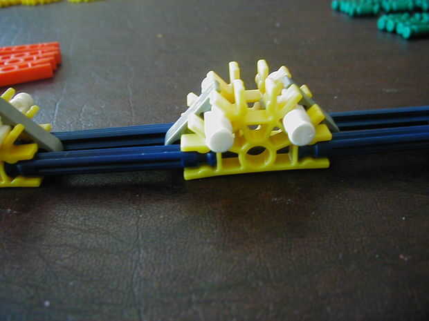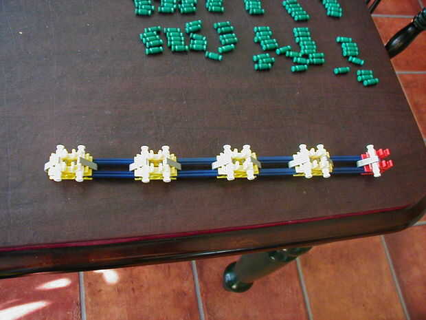 Piezas necesarias: azul barras: 8 varillas blanco: 9 conectores gris oscuros: 9 rojo conectores: 2 conectores amarillo: 8