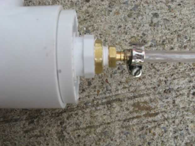 Diapositiva sobre ti claro tubo la lengüeta de la manguera y fíjelo con una abrazadera #4. En el otro extremo de ustedes claro tubo insertar una válvula de bicicleta y garantizar también con una abrazadera #4.