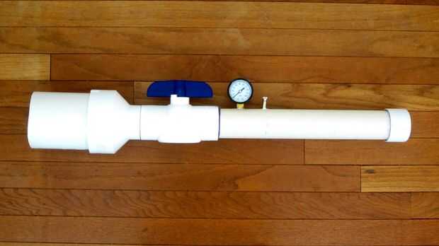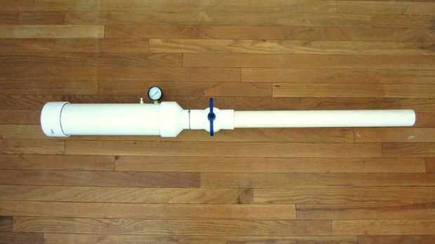 Para este cañón del confeti, hice la cámara de aire de 20 pulgadas pedazo de tubo de diámetro de 2 pulgadas de largo. Decidí hacer la cámara de aire pequeña para hacerla más portable y más fácil de manejar. Hice el cañón de una pieza larga de 6 pulgadas de 4 pulgadas de diámetro de la pipa. Este barril hará una explosión de corto alcance de confeti que está muy difundido hacia fuera.