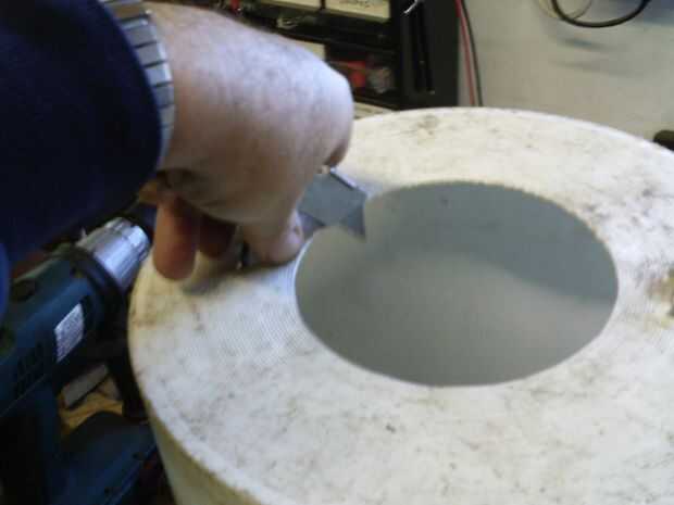 Marcar y cortar un agujero bastante grande en la parte inferior del cubo, simplemente eligió un tamaño al azar y funcionó... puede haber alguna ciencia que trabaje en el orificio de tamaño óptimo para el volumen del cubo pero siento que va a hacer ningún agujero.