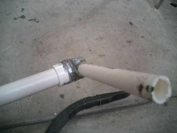 Cortar un agujero en algún lugar cerca del extremo del tubo. Conecte la aspiradora al agujero. Opté por usar otro de PVC para ejecutar desde el tubo de PVC de la manguera de vacío. Es importante asegurarse de que la manguera no obtendrá en la trayectoria de la bola que viaja por el tubo, así que básicamente que la manguera no sobresale a lejos en el tubo. Al instalar, asegúrese de que es bastante hermético. Envolver en cinta un montón y que debe sellar.