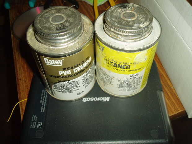 Limpiar el tubo con el limpiador de pipa, luego limpie la tapa. Luego aplicar pegamento a la tapa y ponerla en. No te pegamento en los dedos. Es una mierda para bajar.
