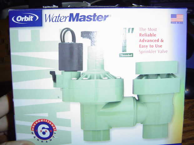 Sobre la válvula: La marca de sistema de riego en el suelo en mi ferretería local era órbita. La válvula específica que utiliza es un Orbit WaterMaster 1" válvula antisifón, con accesorios estándar 1" roscado, solenoide 24 de voltios y presión máxima 125 psi. Página Web de producto No me importa el aspecto de antisifón, pero casualmente como la forma de U de la válvula, que permite para un compacto, fácil de llevar/mantener/disparar cañón.