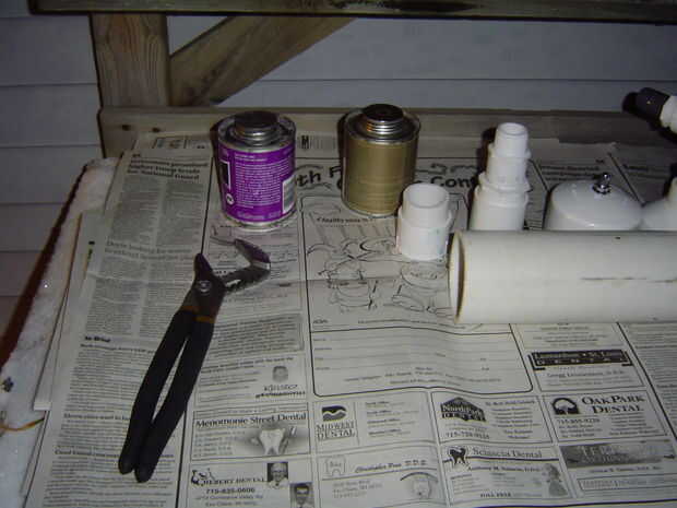 Usted será probablemente también quiere tener un alicates grandes, como las pinzas de bloqueo de canales que tengo aquí. Le ayuda agarre las tuberías y accesorios y es mucho más fácil limpiar el pegamento de las pinzas de sus dedos. Te señalar que cuando se prueba montaje sus accesorios juntos, sienten realmente apretados, como tú no pueden conseguirlas en todo el camino. Al llegar la cartilla y el pegamento en las piezas, se deslizará juntos como la mantequilla. No te preocupes por eso, pero asegúrese de no cortar el tubo demasiado corto, como podrás deslizar en más con el pegamento en él que pudiera mientras estaba seca.