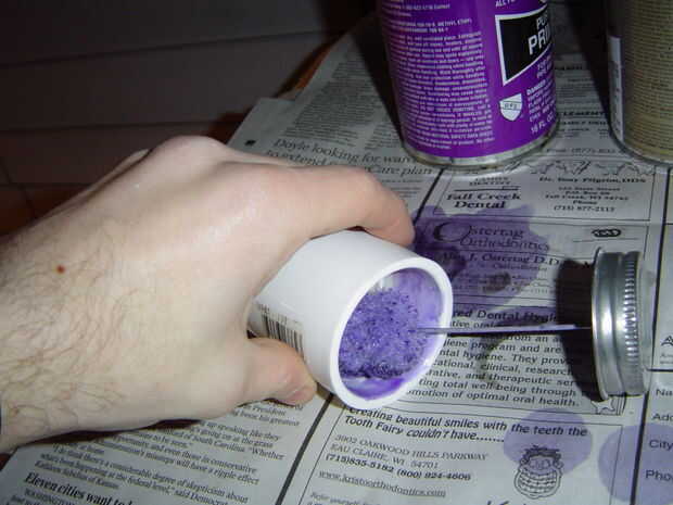 El pegamento realmente apesta, es muy inflamabley provocará numerosos defectos de salud y posiblemente la muerte simplemente por trabajar con él. No realmente, pero sus cosas desagradables. Como se puede ver en la primera imagen, estoy trabajando fuera, porque el pegamento causa dolores de cabeza y cáncer (no realmente), en Banco plantación de mi papá. He puesto abajo un viejo pedazo de madera contrachapada, que cubrí con unas 10 hojas de periódico. Vas a derramar la cartilla y el pegamento y no desea estropear algo importante.