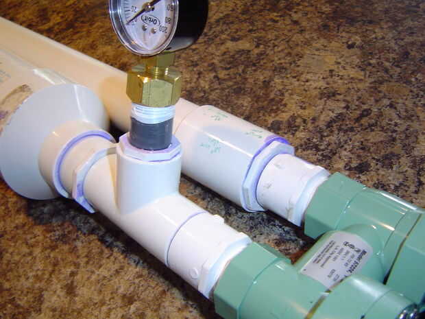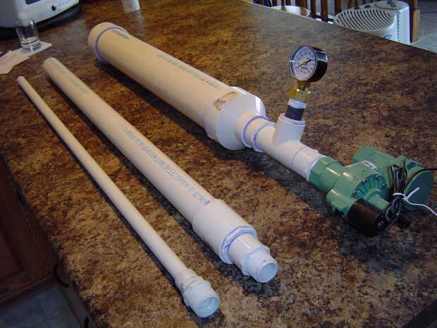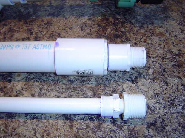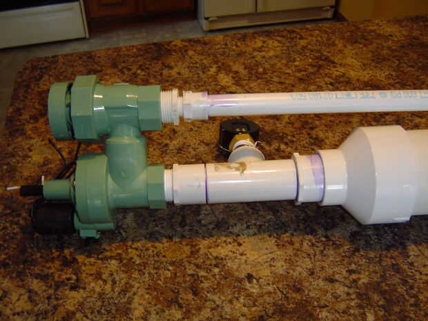 Después de pegar y grabar todas las piezas necesarias, que necesita montar todo junto. Dependiendo de qué partes pegan y que usted grabó, las piezas que necesita para montar aquí será diferentes. Simplemente conecte la cámara al lado de la entrada de la válvula del aspersor y conecte uno de los barriles al lado de salida de la válvula.