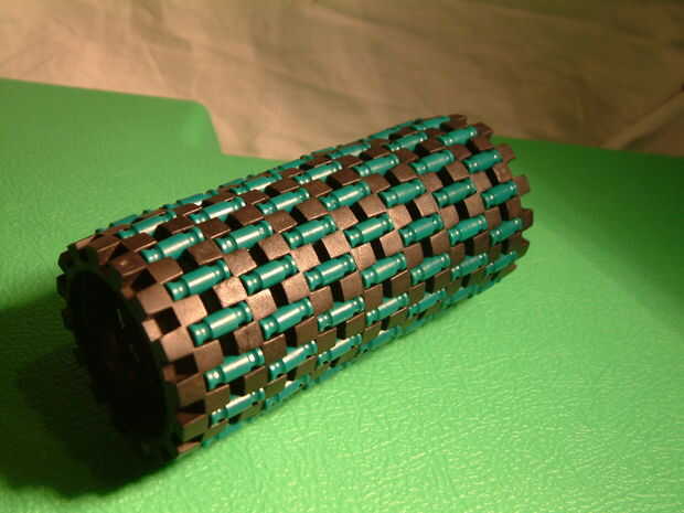 Ello la broca que tiene para las edades a hacer!!!!!! Tomar las 2 ruedas y poner 2 de los neumáticos en ellos entonces Foto algunas de las barras verdes y presione en el neumático treds tan duro como usted puede, como en la imagen. Repita con el resto de los neumáticos.