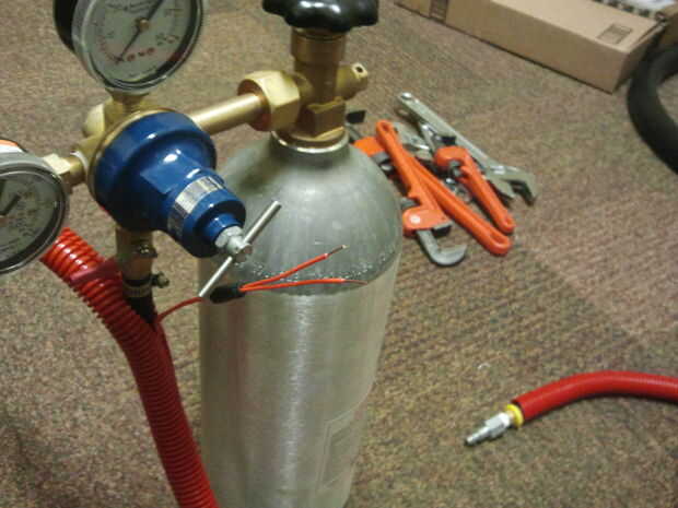 El DCV funciona apagado de una fuente de alimentación de 24VDC. Para este proyecto, estoy usando una Black y Decker 24 voltios Batería salió un cortabordes. Mientras probando el DCV para asegurarse de que funcionaba, me di cuenta de la válvula está normalmente cerrado - es decir, se llena cuando está energizado y se activa cuando está en estado neutro de él. Esto es lo contrario de lo que esperaba, pero no te preocupes, un relé y unos interruptores fácilmente pueden rectificar la situación.