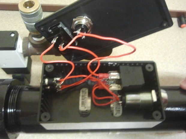 Se puede ver en fotos del proyecto terminado que tengo 3 conectores de coaxial en la caja de la consola. Los cables de la batería se enrutan a través de la primera unión coaxial. A partir de ahí, la fuente de alimentación se interrumpe inmediatamente por 2 interruptores: un interruptor de llave y un interruptor de palanca. La llave es de seguridad. Quería asegurarse de que sólo yo (o una persona autorizada) podría funcionar el lanzador. La palanca es un simple encendido y apagado para el resto del circuito.