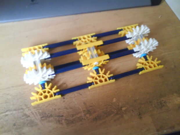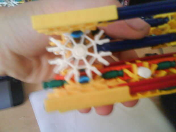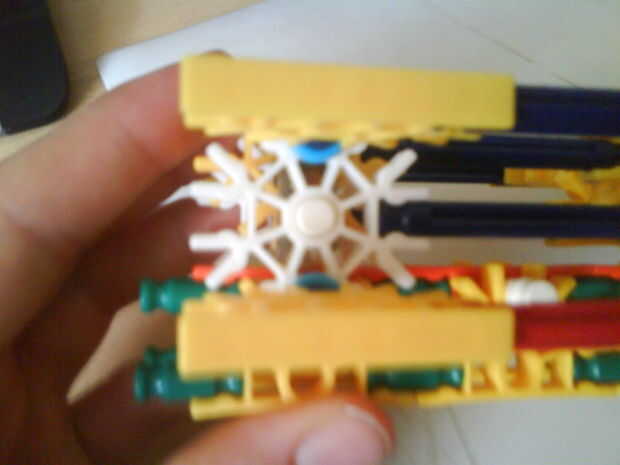 aquí es: mi cañón. Dispara misiles grandes y les tira duro. Es accionado por 48 gomas, atados en 8 cadenas de 6. Es 2 pies de ancho (en la proa) y 5 pies de largo.  Tiene un rango promedio de cerca de 100 pies de la posición de reposo. Utiliza un mon