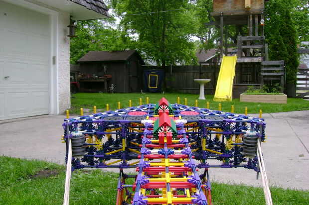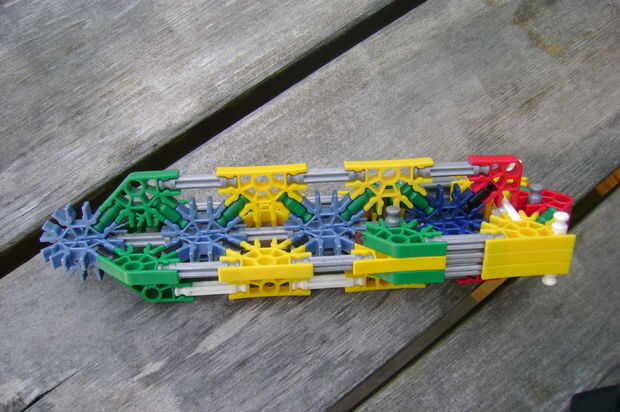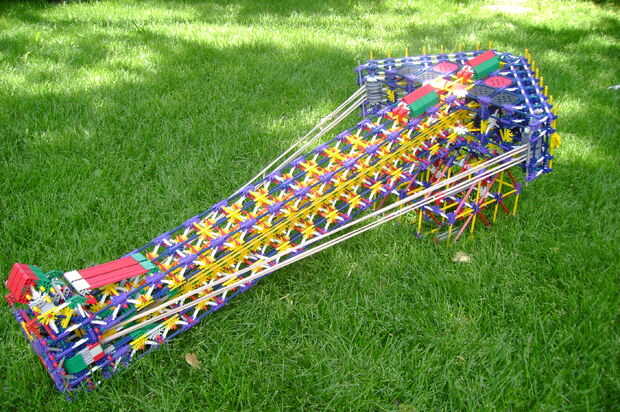 aquí es: mi cañón. Dispara misiles grandes y les tira duro. Es accionado por 48 gomas, atados en 8 cadenas de 6. Es 2 pies de ancho (en la proa) y 5 pies de largo. Tiene un rango promedio de cerca de 100 pies de la posición de reposo. Utiliza un montón de piezas, lo sé, aunque yo podría trabajar en una versión más pequeña más adelante. Si construyes mi cañón, sepan que estoy en ningún caso responsable de cualquier daño con él.
