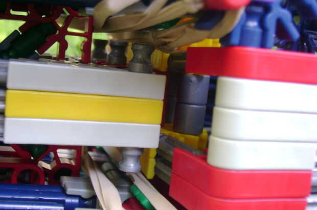17: tomar el elástico y poner sobre las puntas de los blancos se deshace como se muestra. también puede ir sobre los conectores amarillo si es necesario. Ser muy, muy seguro que ninguno de los elásticos son delante de cualquiera de las barras en la parte posterior. No hacerlo puede y dará lugar a fallos de encendido y un montón de piezas rotas.