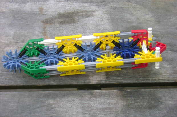 12: tomar las dos últimas cadenas (que son en la parte superior) y ponerlos en la barra roja inferior. A se tiene que cambiar la cadena superior debajo de la cuerda inferior en alguna parte alrededor de la mitad del arco. Puede hacer quieras.