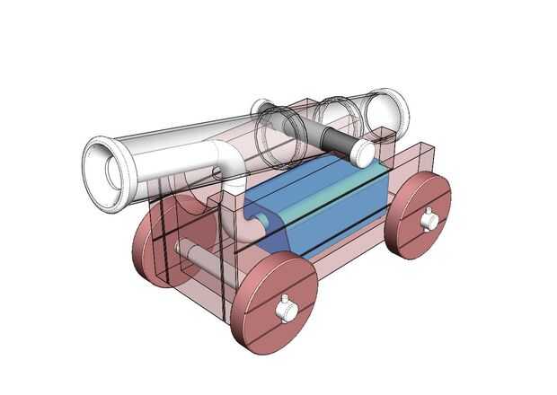 (www.eikedesign.com) usé Solidworks para determinar el método de plomería. Me decidí a sondear un camino desde la salida de la máquina de niebla para arriba a través de la parte inferior del cañón para salir en la parte delantera. Usé un tubo de diámetro grande para el cuerpo de cañón, un diámetro más pequeño para la ruta de la niebla y un reductor en la parte delantera del cañón a los 2 y para simular la pared gruesa de mi cañón.